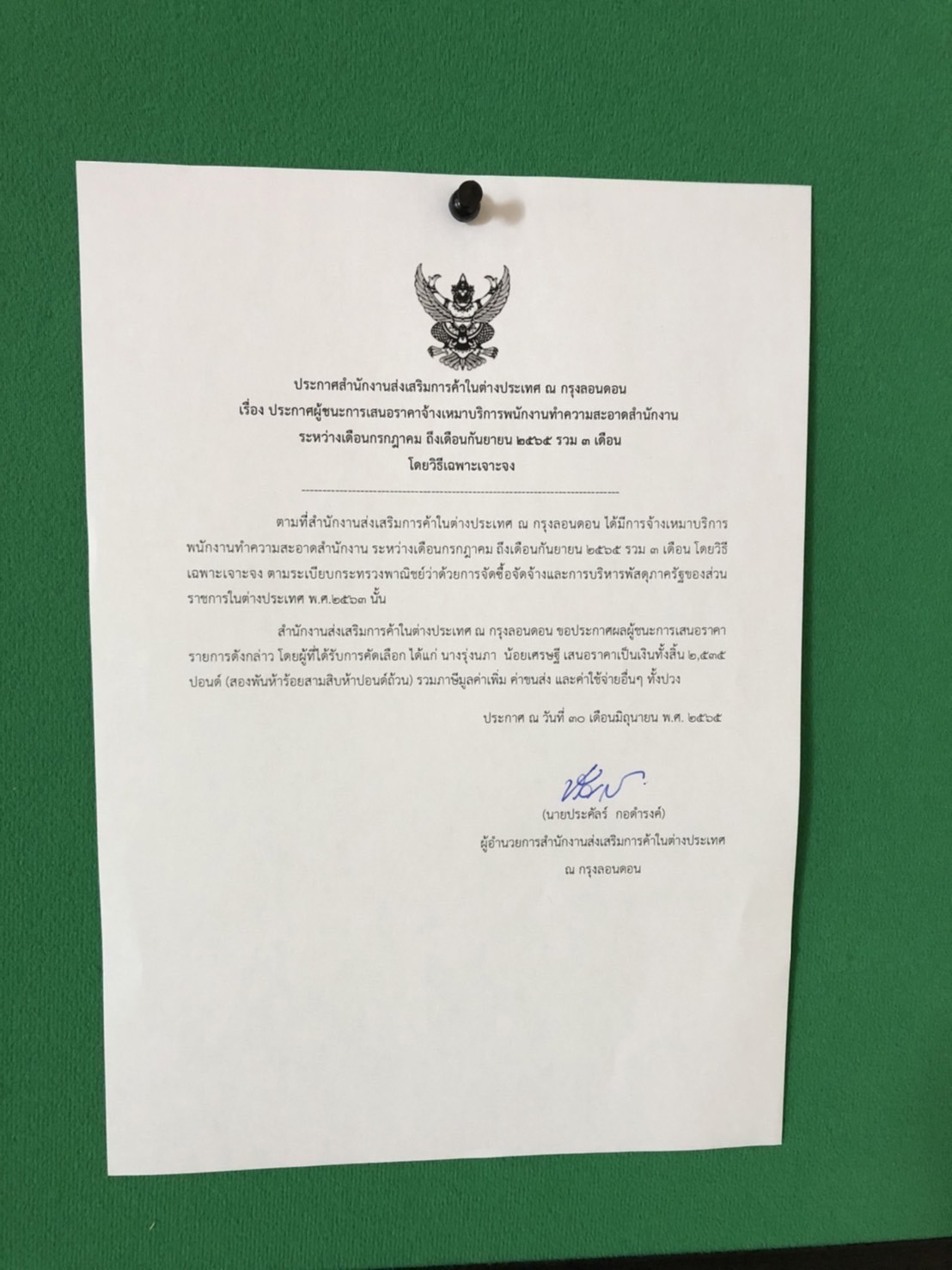 Home Uncategorised จัดซื้อจัดจ้าง ประกาศผู้ชนะก... ประกาศผู้ชนะการเสนอราคาจ้างเหมาบริการพนักงานทำความสะอาดสำนักงาน ระหว่าง เดือน ก.ค.-ก.ย.65 Facebook Twitter Pinterest WhatsApp RELATED ARTICLESMORE FROM AUTHOR ประกาศรายชื่อผู้ผ่านการคั... รายชื่อผู้มีสิทธิสอบและสั... ประกาศรับสมัครบุคคลเพื่อค... Auction Announcement R... ประกาศผู้ชนะการเสนอราคาจ้...