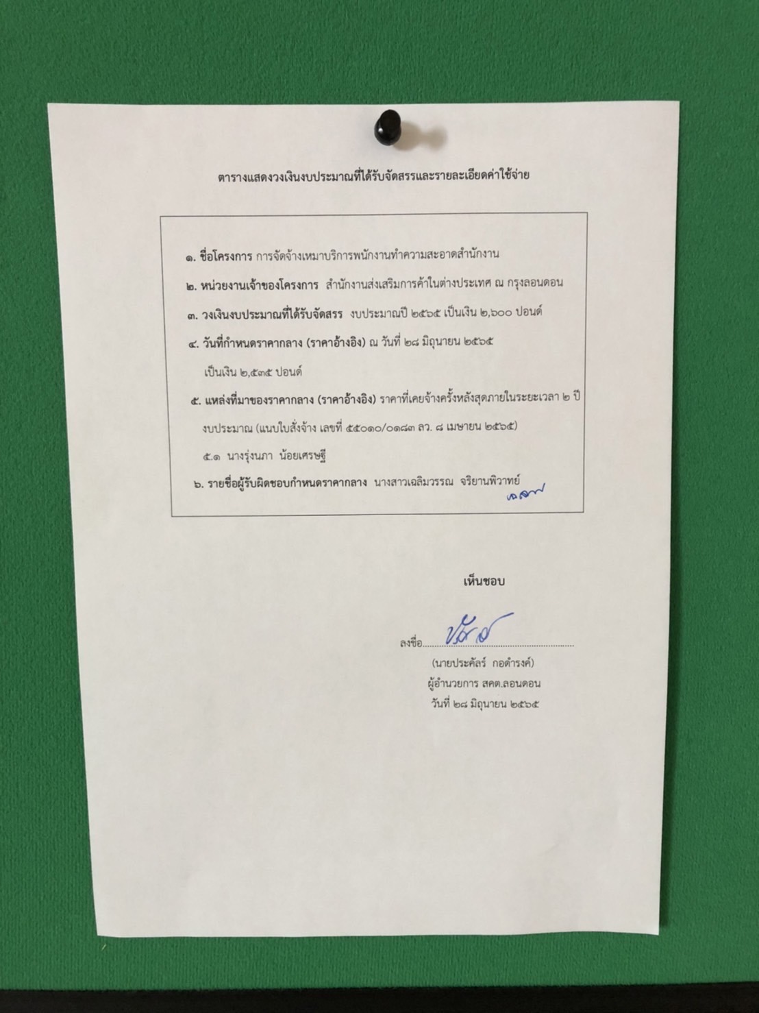 ประกาศราคากลางโครงการจ้างเหมาบริการพนักงานทำความสะอาดสำนักงาน ระหว่าง เดือน ก.ค.-ก.ย.65