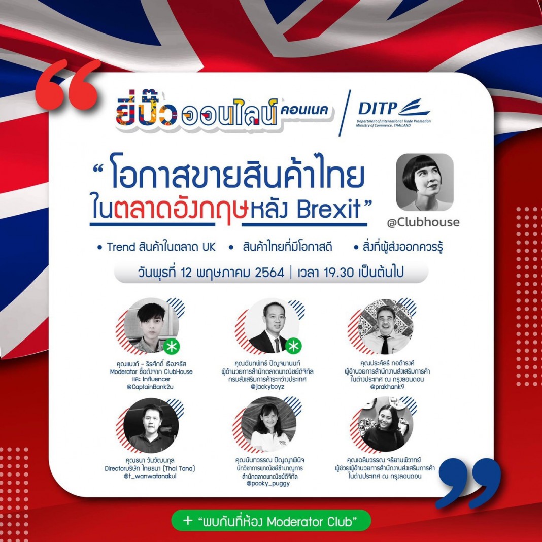 Home In Focus โอกาสขายสินค้... โอกาสขายสินค้าไทยในตลาดอังกฤษหลัง Brexit Facebook Twitter Pinterest WhatsApp RELATED ARTICLESMORE FROM AUTHOR The Provincial E-Catalog ... ประกาศรับสมัครบุคคลเพื่อค... THAI HOM MALI RICE CERTIF... Thai Silver Exporters Mem... Colleen Products