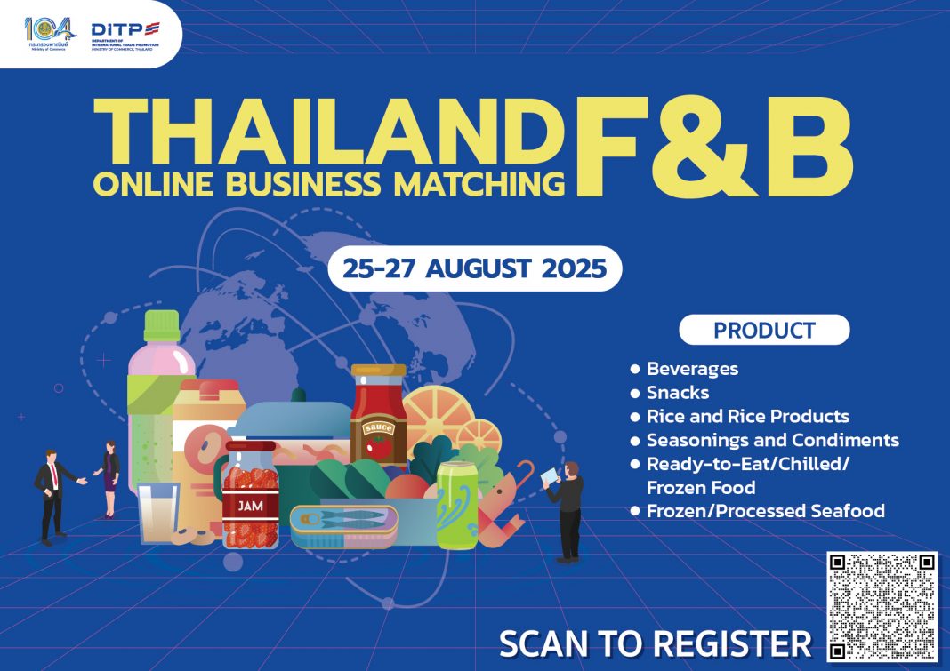 Home Events in Thailand Thai Food �... Thai Food & Beverage Online Business Matching Facebook Twitter Pinterest WhatsApp To Register https://register.matchingthailand.com/registration/create/tfb25/?code=2025 RELATED ARTICLESMORE FROM AUTHOR Amazing Thailand Grand De... Thailand Local SDGs Plus ... Thailand F&B Online ... ISAN Market – Onlin... TILOG-Logistitix, 21 Augu...